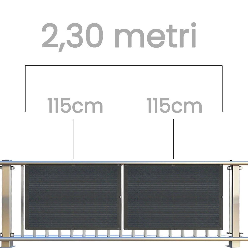 Se installi i 2 pannelli in verticale hai bisogno di 1,84 m di spazio minimo libero di ringhiera per l’installazione.