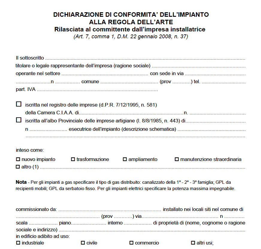 CERTIFICATO DI CONFORMITA' DiCo (Da allegare al modulo ARERA)