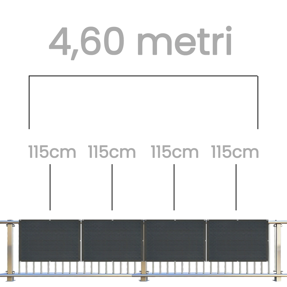Se installi i 4 pannelli in orizzontale hai bisogno di 4,60 m di spazio minimo libero di ringhiera per l’installazione.