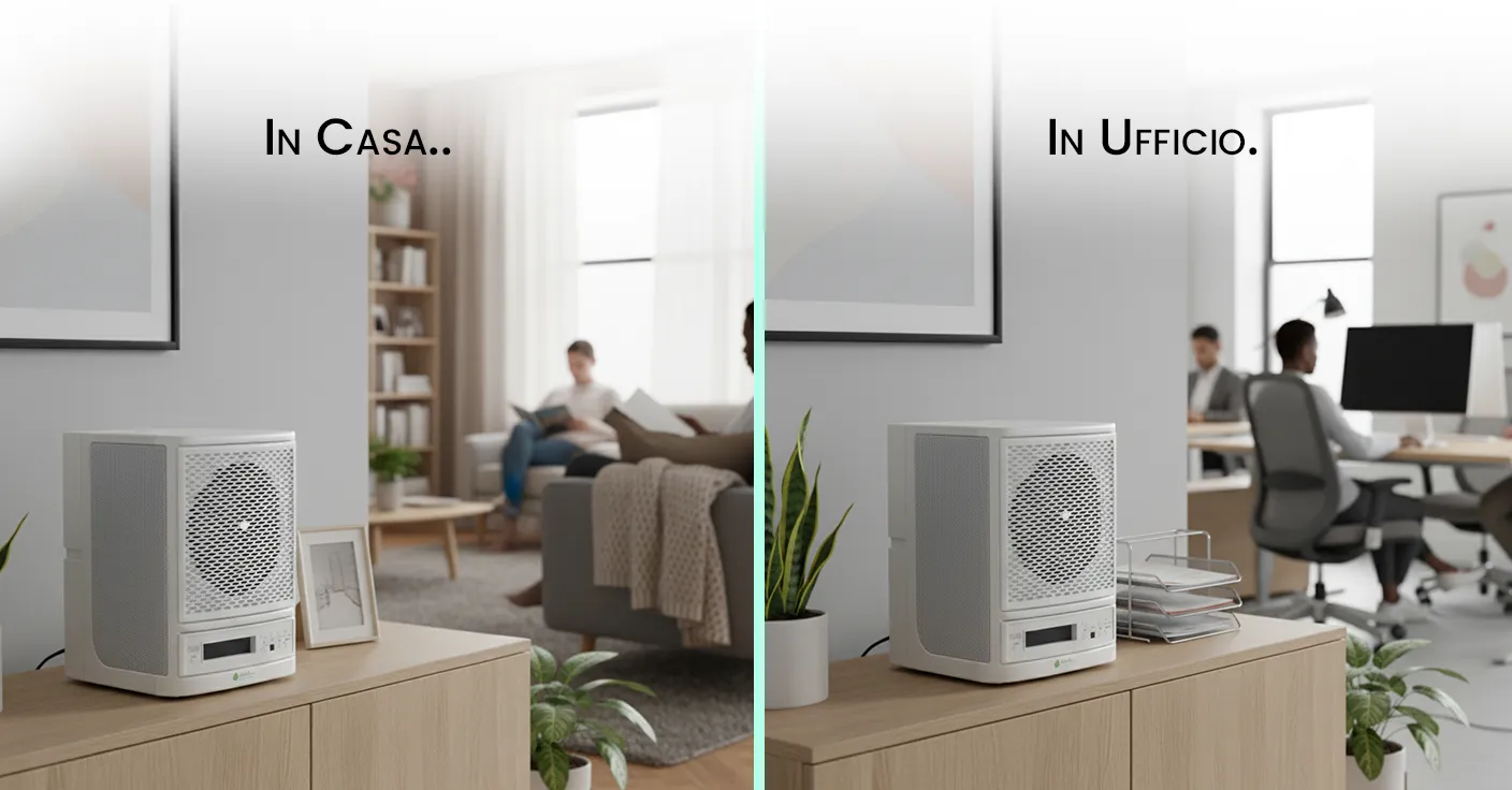 Ionizzazione attiva e produzione controllata di ozono lavorano per purificare l’aria in modo profondo ed efficace. Questo sistema consente di neutralizzare virus, batteri, muffe e composti organici volatili presenti nell’ambiente, riducendo il rischio di contaminazioni e migliorando significativamente la qualità dell’aria respirata. L’ozono, generato in quantità calibrate e sicure, agisce come potente agente ossidante, eliminando odori sgradevoli e microorganismi patogeni anche in punti difficilmente raggiungibili dai sistemi tradizionali di filtrazione.