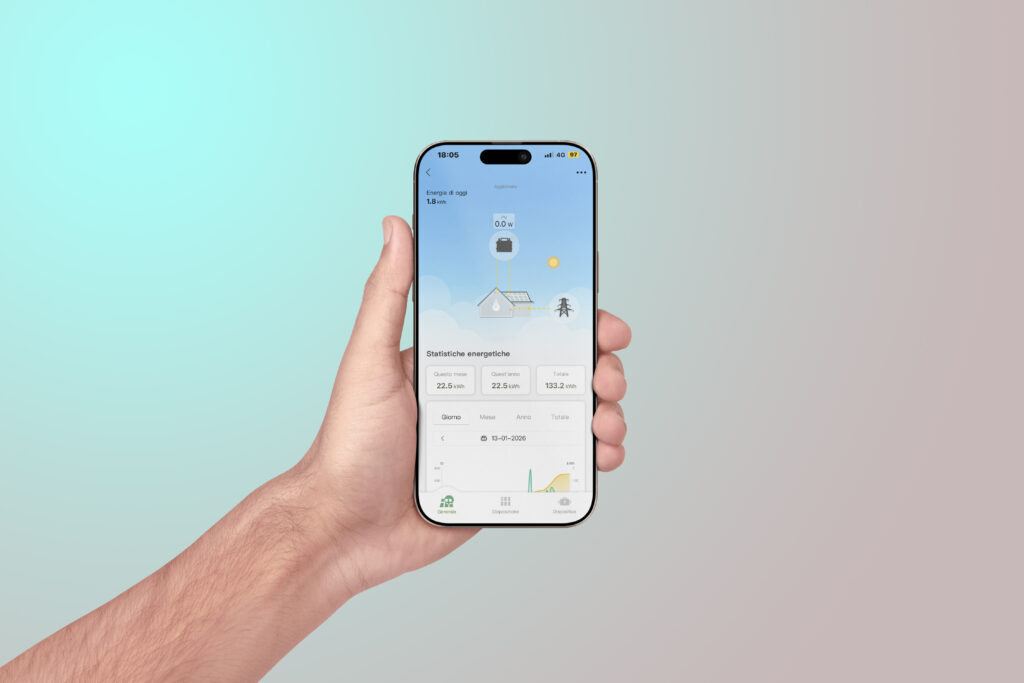 Il Wi-Fi integrato consente di controllare la produzione in tempo reale tramite app, con dati dettagliati a livello di singolo modulo. Tutto il tuo impianto è sempre sotto controllo, ovunque ti trovi.