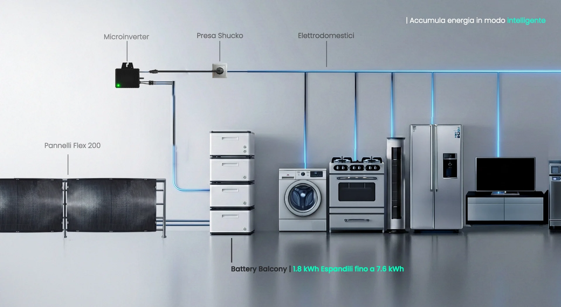 - Mini Fotovoltaico Reale: Si collega a una presa con derivazione unifilare di casa. Fai tutto da solo in pochi minuti.